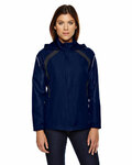 SHELL: 100% 240T polyester pongee, 2.3 oz./yd2/78 gsm; INSERTS: 100% 240T polyester pongee; Inside storm placket with chin guard; Roll-away hood; front reversed coil zipper with semi-auto lock rubber pull tab; Contrast color and tonal embossed print inserts; Reflective piping at upper sleeves; Two lower front concealed zippered pockets; Adjustable shock cord at hood ; Adjustable cuffs with tabs; Audio port access through inside lower left pocket; Companion styles;